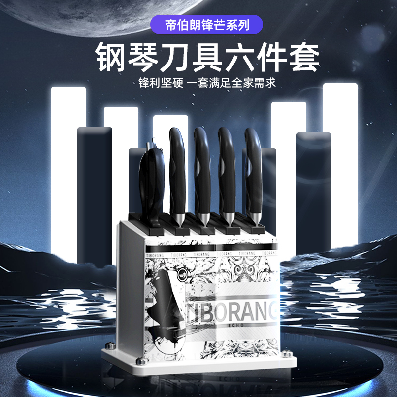 产品内含:主品:刀具套装6件套(砍骨刀+切片刀+三德刀+水果刀+多功能剪刀+刀架) 额外赠品:油壶*2