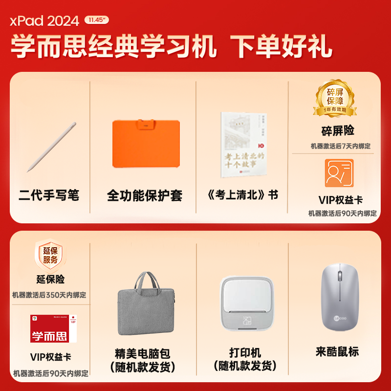1.需要保持外包装无破损无磕碰,学习机那层保护膜要一起寄回。赠品手写笔,保护套,支架智慧眼,充电器充电线,都要一起原包装打包寄回哈,以免产生扣费,请知悉;