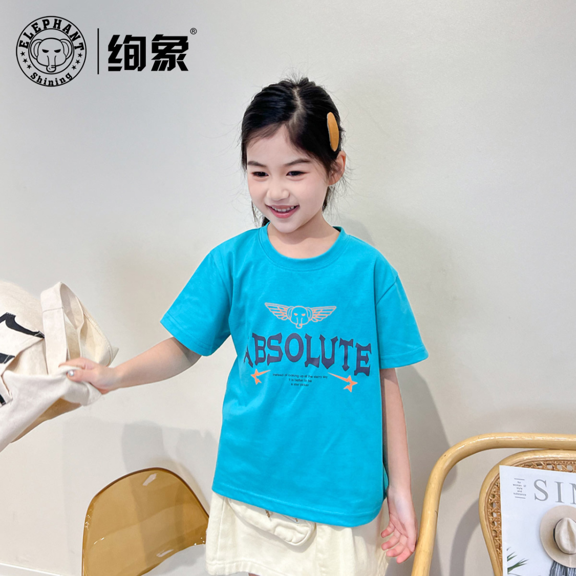 产品名称:绚象 儿童飞翔星星小象短袖