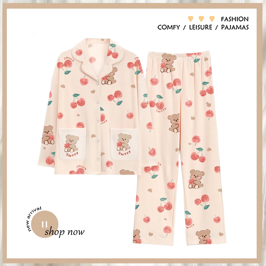 产品名称:【樱桃小熊睡衣套装】2024秋季新款休闲减龄翻领舒适柔软弹力家居服套装58675