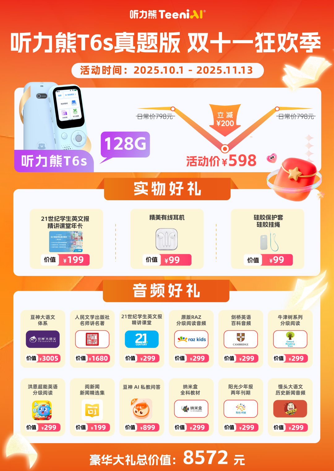 产品内含:听力熊T6S*1、USB数据线*1、说明书*1
