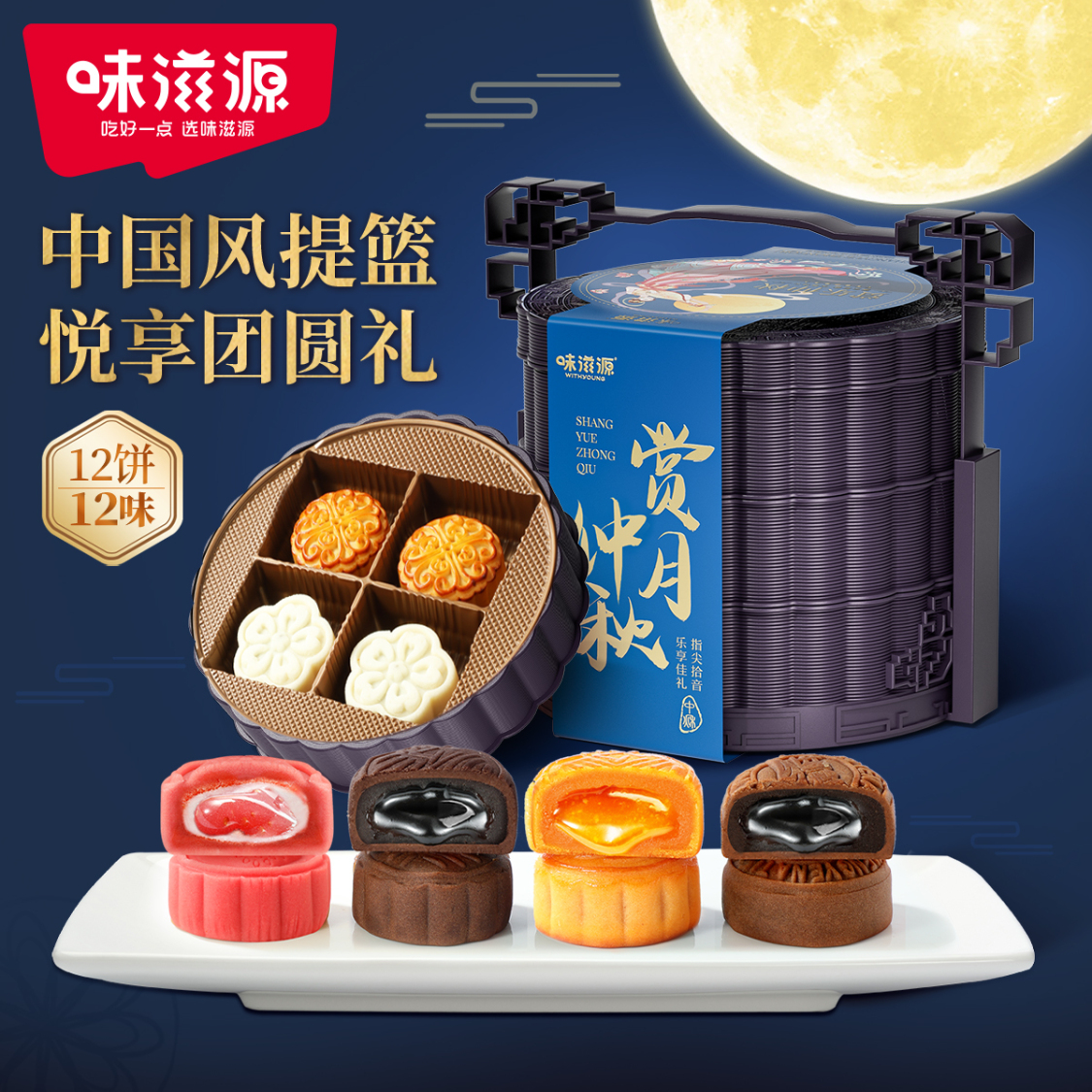 产品名称:【12饼12味】味滋源三层提篮月饼礼盒流心月饼中秋礼盒660g