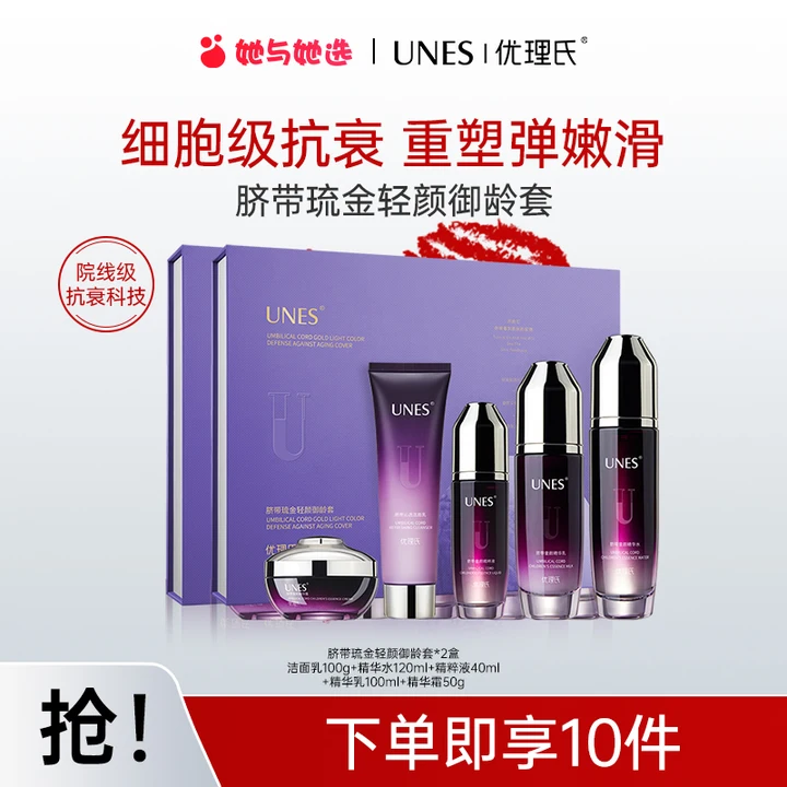 (5件套内含脐带琉金轻颜御龄套洁面乳100g+精华水120ml+乳液100ml+精华40ml+面霜50g)