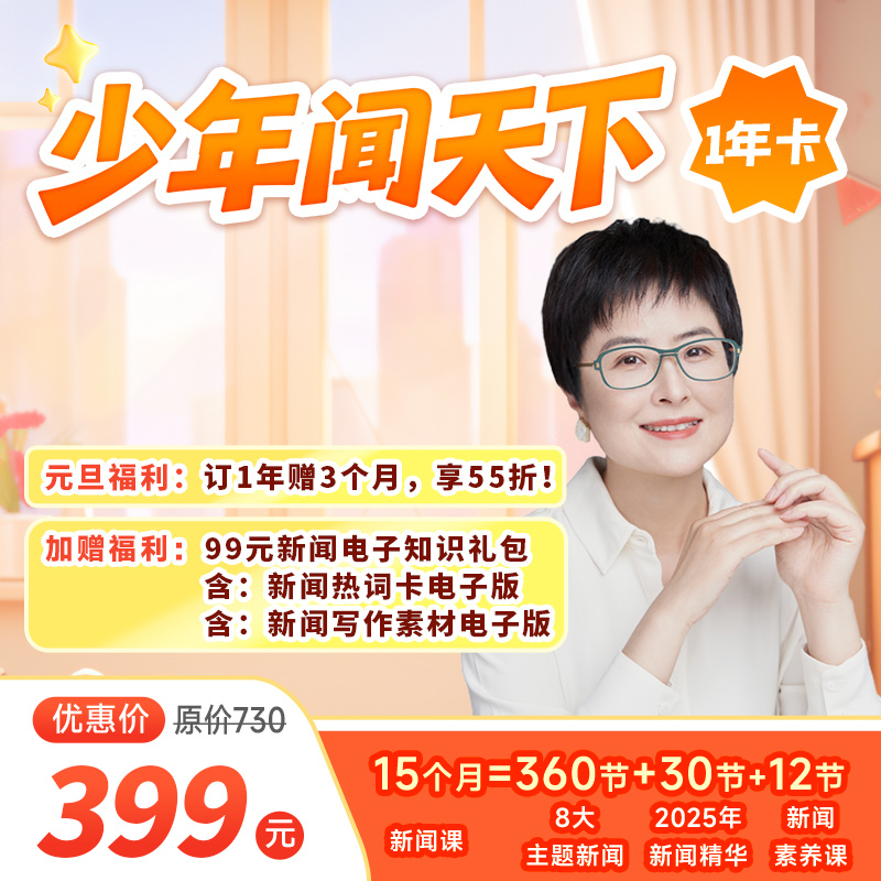 【课程包含】少年闻天下新闻课一年卡,12个月新闻课=六大主题新闻 312集+新闻素养课12集