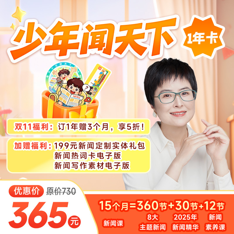 【课程包含】少年闻天下新闻课一年卡,12个月新闻课=六大主题新闻 312集+新闻素养课12集