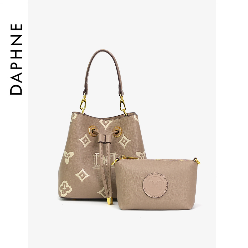 品牌名称:达芙妮手提斜跨水桶包DFN10360杏色