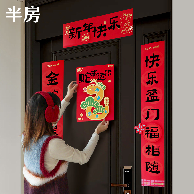 产品名称:半房 五福蛇年立体大对联 2款花色 黑字/金字