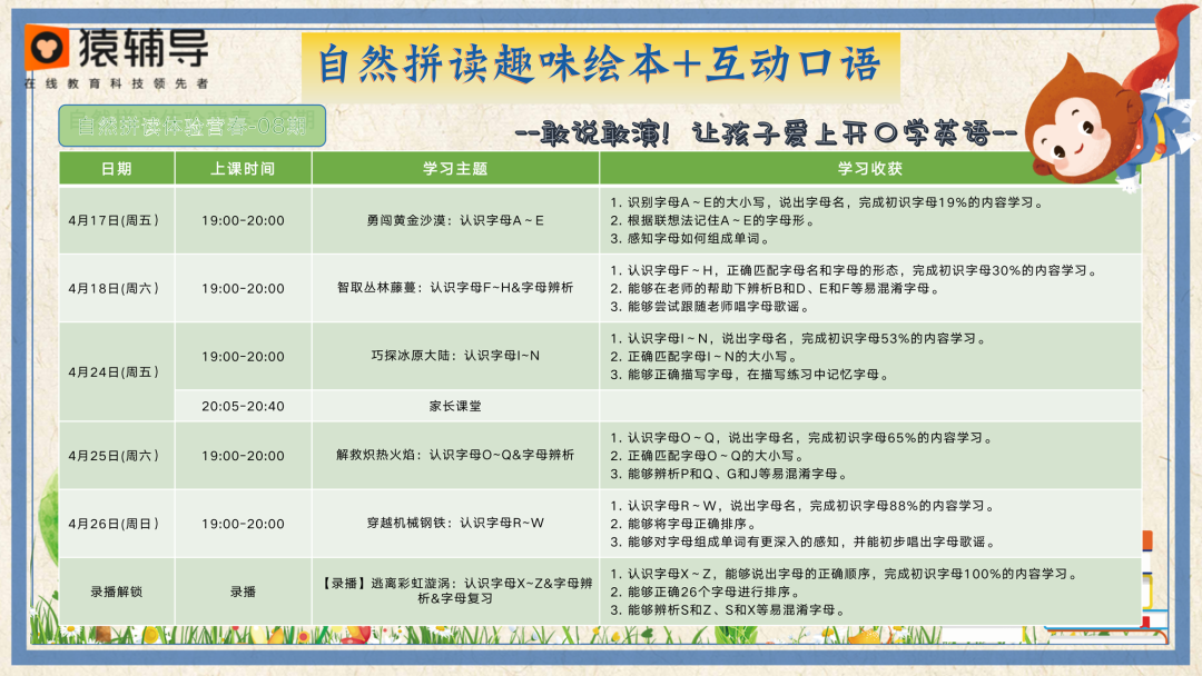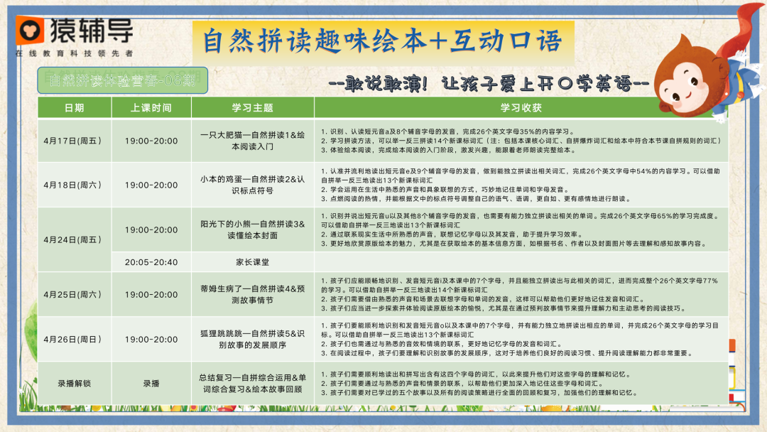 【课程名称】猿辅导 自然拼读&绘本阅读体验包