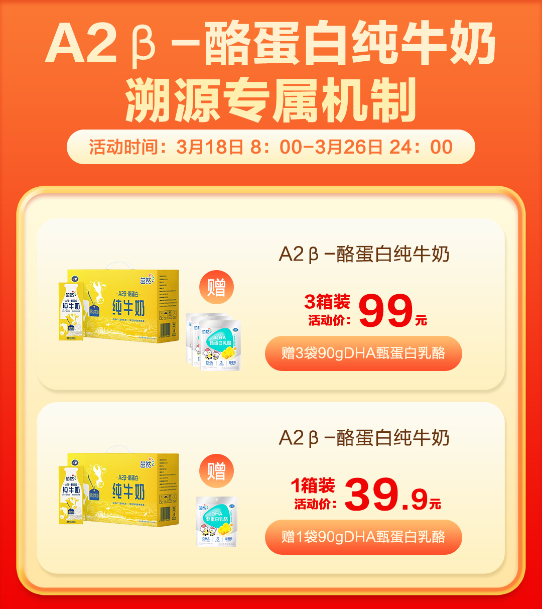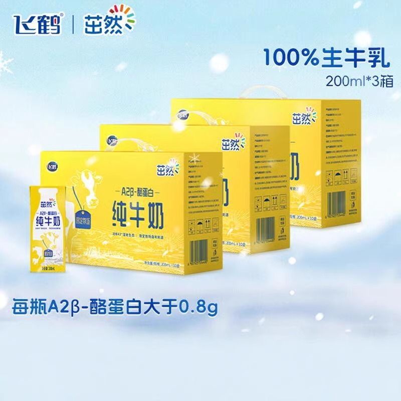 产品名称:飞鹤茁然A2β-酪蛋白纯牛奶200ml*10盒/箱