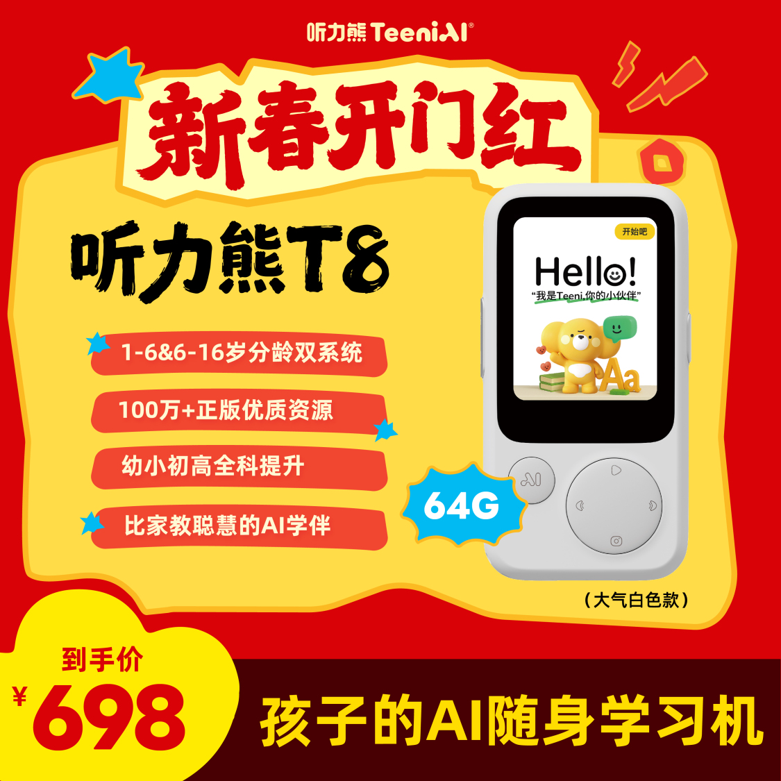 可选款式:听力熊T8白色款(64G)