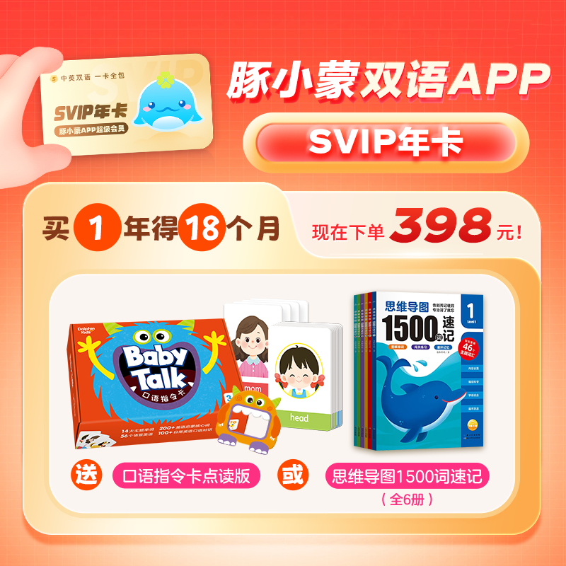 SVIP年卡送:送6个月SVIP会员+Baby Talk口语指令卡(点读版)/思维导图1500词速记:全6册(二选一)