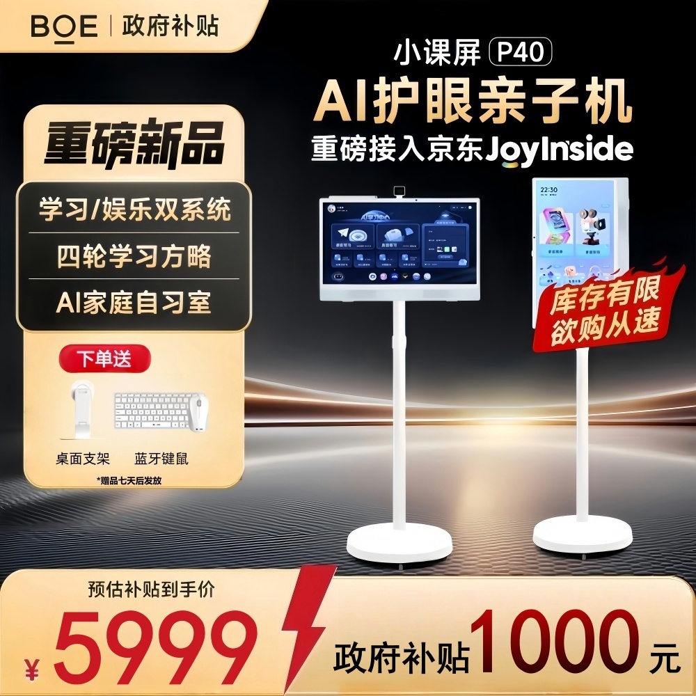 产品名称:京东方小课屏P40尊享版学习机(8GB+512GB)