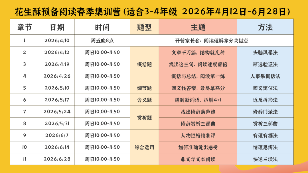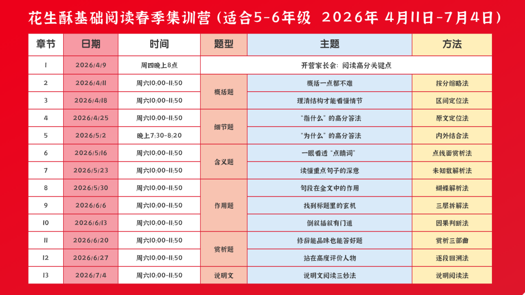【课程包含】花生酥阅读直播专项集训营【预备班、基础班、进阶班】+配套实物教材(每个级别是2本教材,分别是《花生酥阅读理解给家长的创作指导书》*1《花生酥阅读理解答案参考》*1)