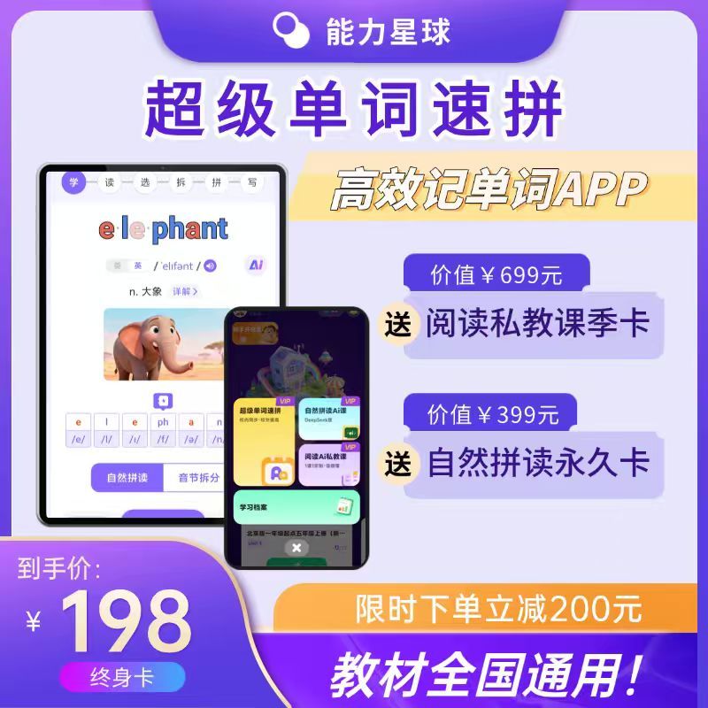 【课程名称】能力星球-超级单词速拼【终身卡】