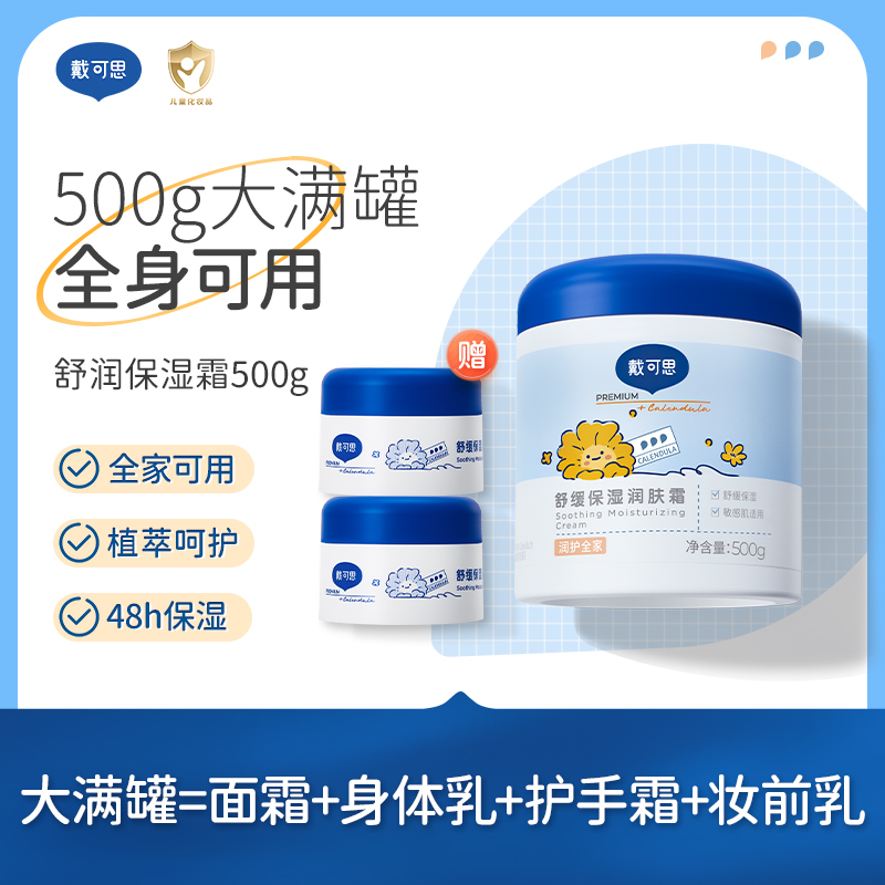产品名称: 戴可思舒缓保湿润肤霜500g加赠同款30g*2+挖勺