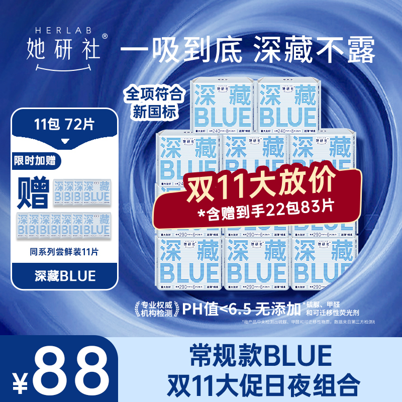 产品名称:Herlab 她研社深藏BLUE常规款卫生巾 日夜组合