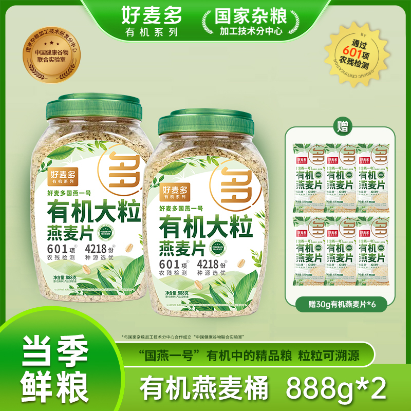 产品名称:好麦多国燕一号有机大粒燕麦片888g/桶装*2罐