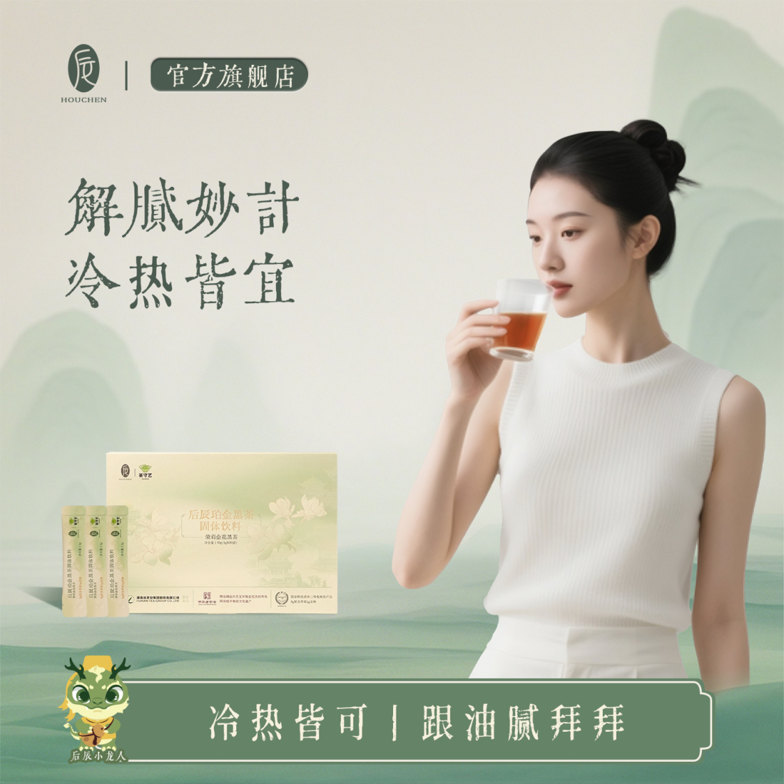 产品成分:速溶黑茶粉(茯砖茶)、速溶茉莉花茶粉(烘青绿茶、茉莉花)