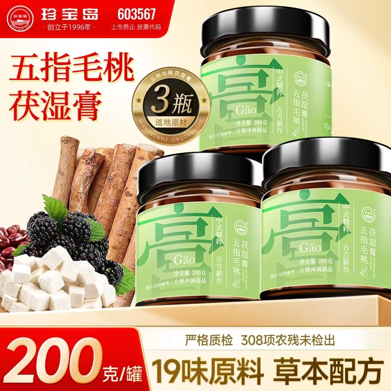 产品成分:茯苓(茯苓含量>30%)、桑椹、赤小豆、五指毛桃、山药、莲子、芡实、薏苡仁、大枣、砂仁、橘皮、桔梗、白扁豆、百合、桔红、甘草、干姜、藿香、肉桂