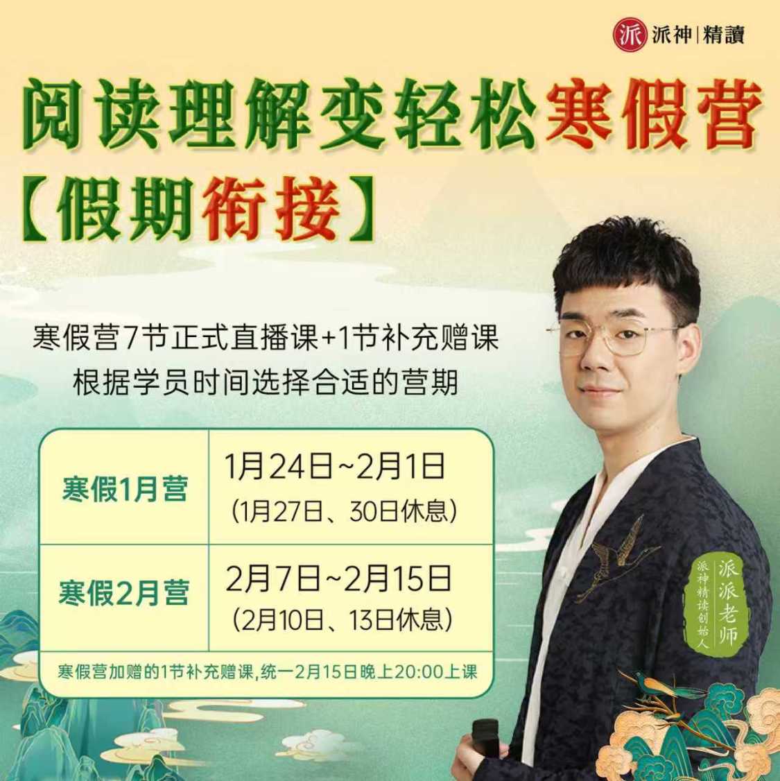 【课程名称】【假期衔接】派神精读·阅读理解变轻松寒假营--共7节正式直播课+1节补充赠课