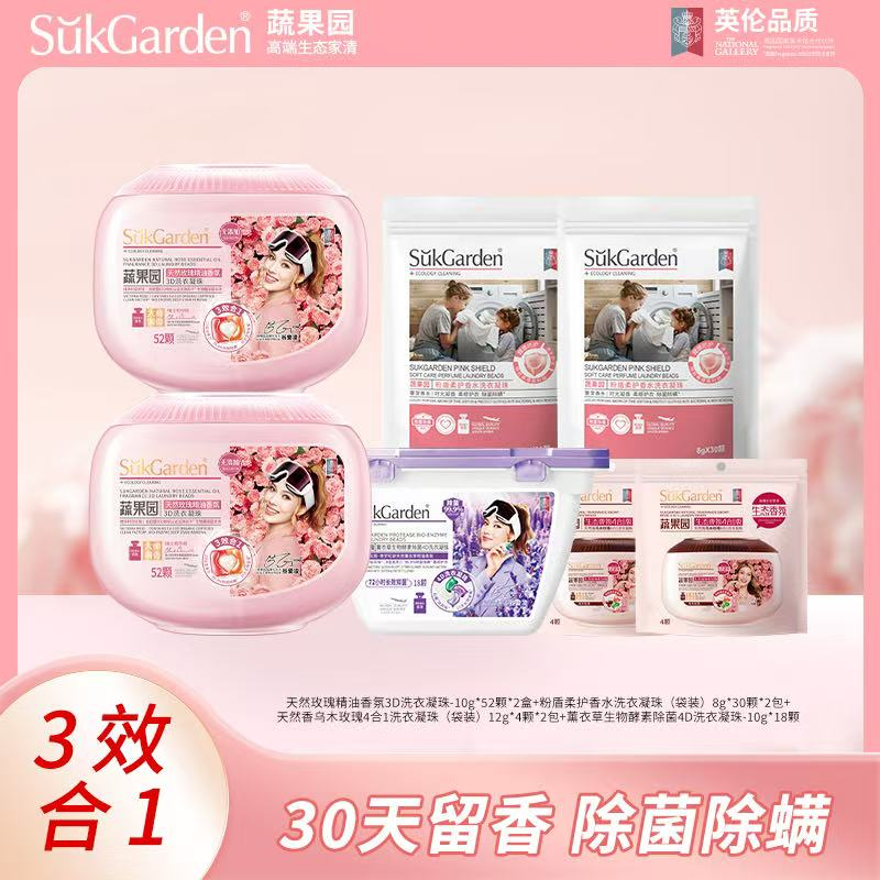 产品名称:蔬果园天然玫瑰3D洗衣凝珠组合(2+2+2+1)到手190颗