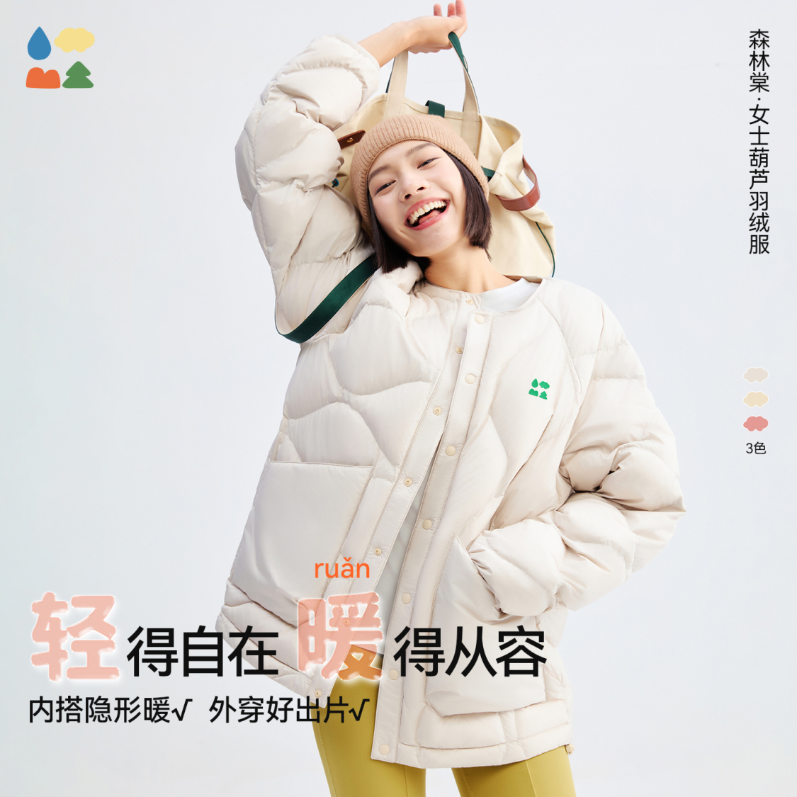产品名称:【650+蓬松】森林棠「葫芦纹理」女士防泼水基础内外穿羽绒服80932505