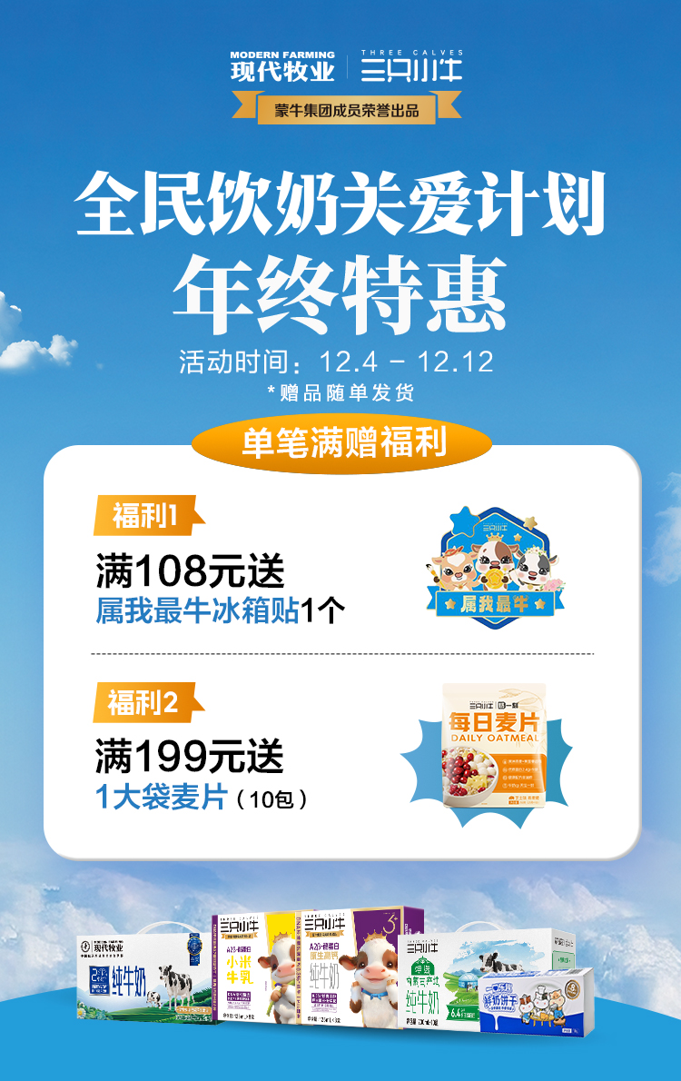 产品名称:三只小牛A2B酪蛋白小米乳牛奶