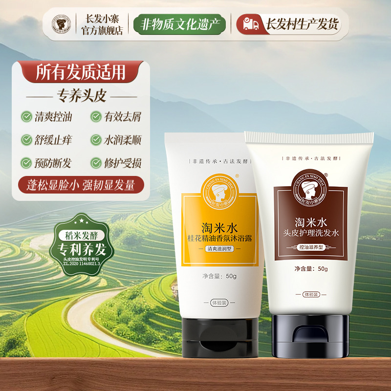 产品名称:长发小寨淘米水控油滋养洗发水+桂花香氛沐浴露