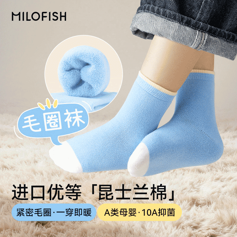 品牌名称:MILOFISH米乐鱼儿童毛圈袜10A抑菌 进口昆士兰棉袜 4双装