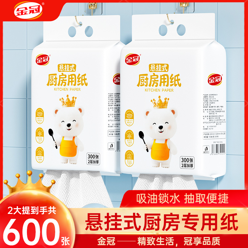 产品名称:金冠悬挂式厨房纸原生木浆油吸油吸水150抽/提(2层加厚)三折叠抽取式
