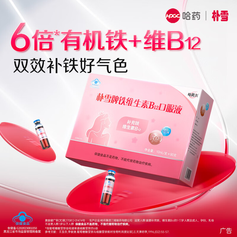 产品名称:哈药朴雪牌铁维生素B12口服液
