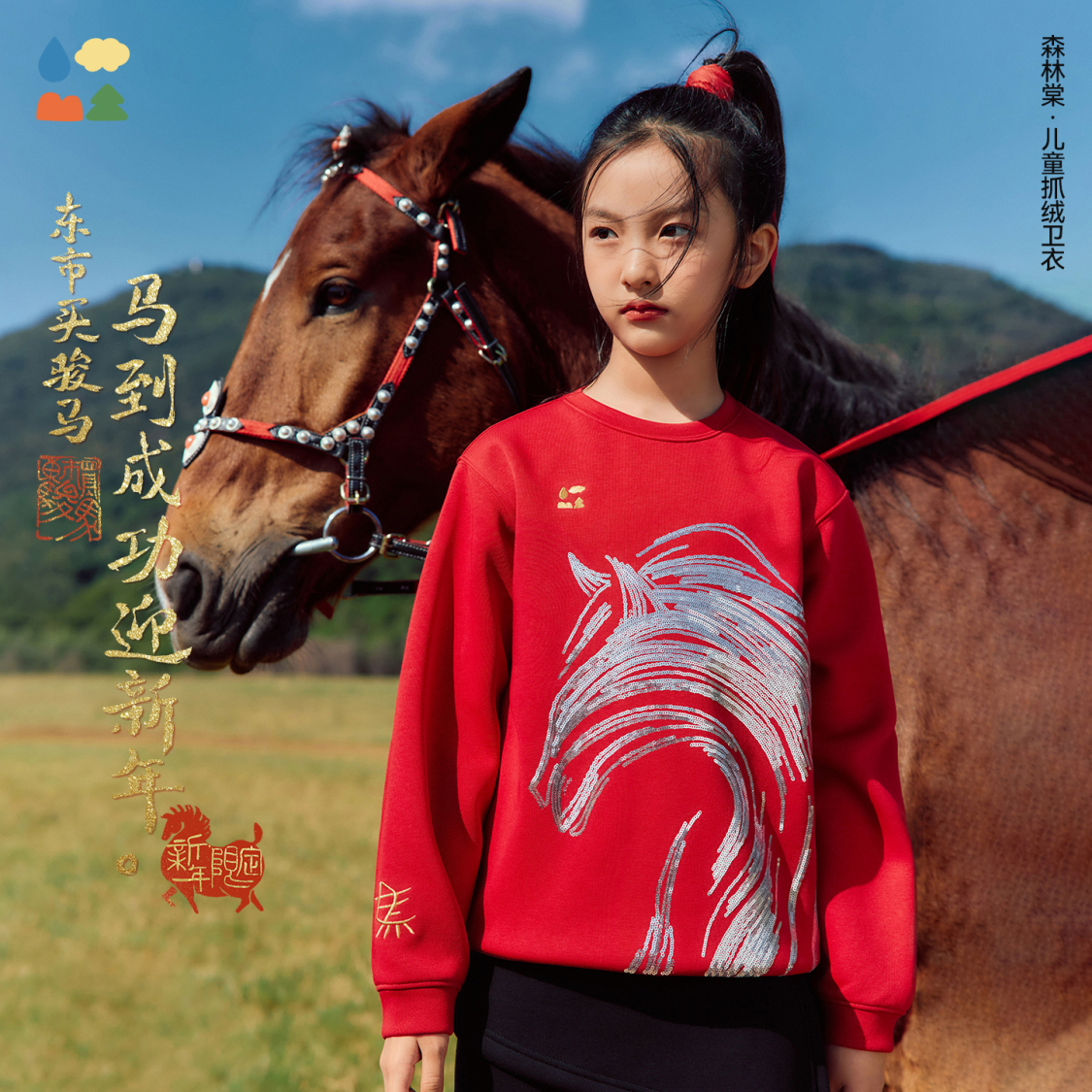 产品名称:新年款 银马 森林棠【马住年好运】26年新年限定柔软高弹儿童加绒宽松圆领卫衣