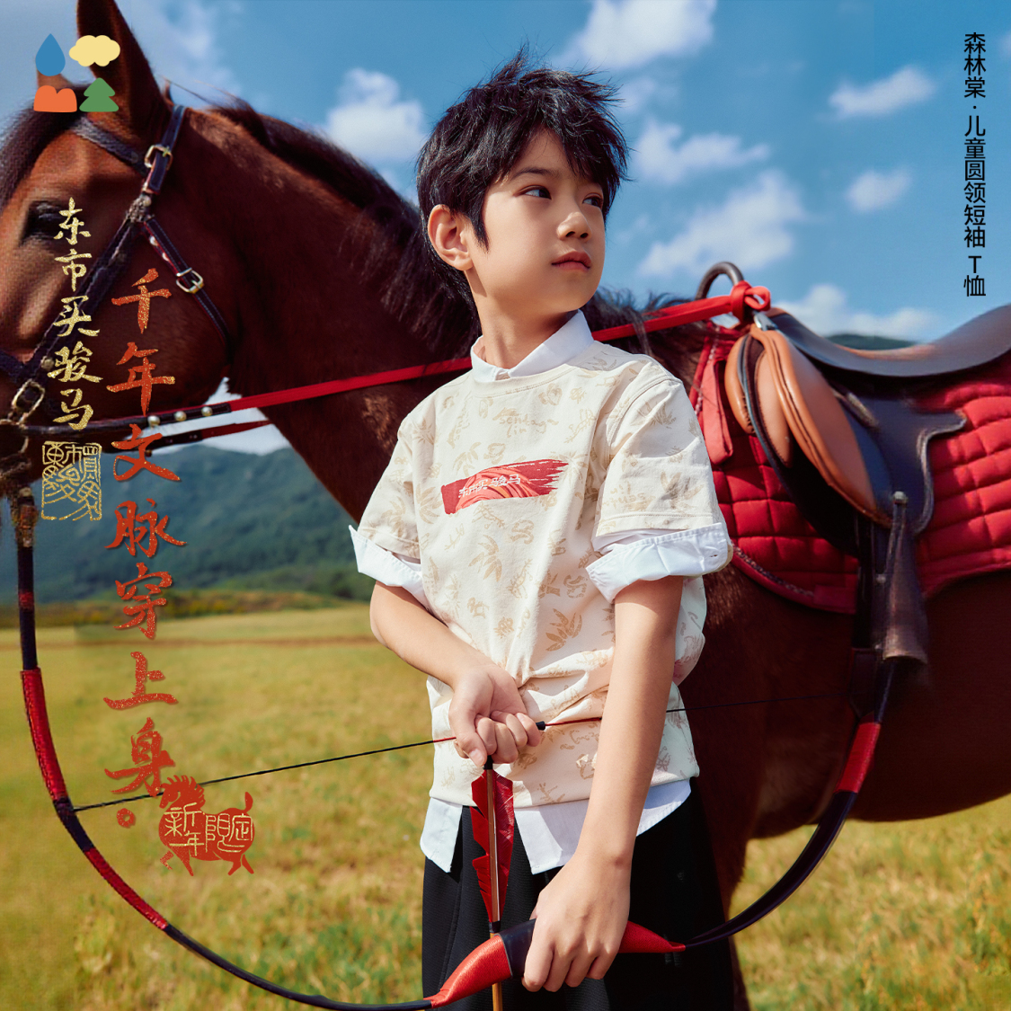 产品名称:森林棠【莱卡棉】26新款「千年文脉满印」高弹儿童圆领短袖T恤20161076
