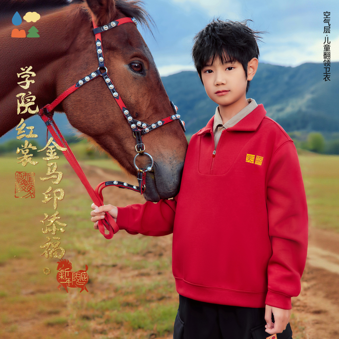 产品名称:森林棠【新年学院风】26新款「空气层」儿童轻暖冬翻领半拉链卫衣新年款20361145