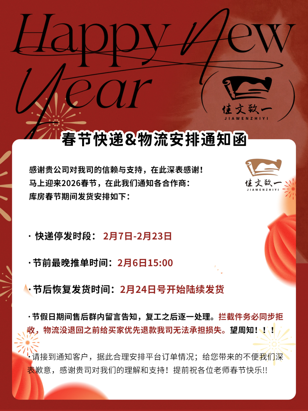发货说明: