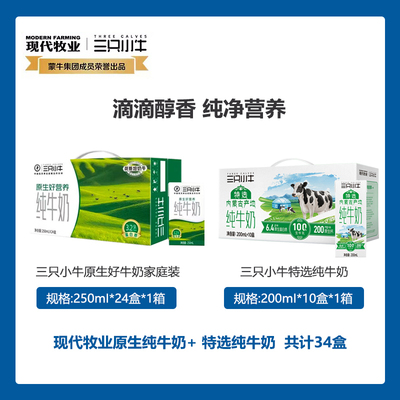 产品规格:250ml*24盒/箱+ 特选纯牛奶 200ml*10盒/箱