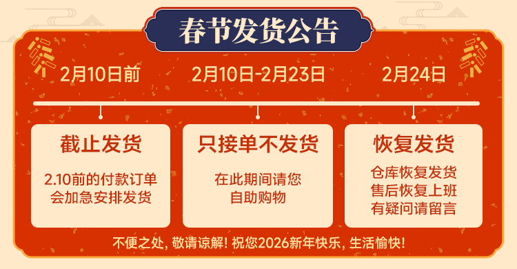 1.下单后2个工作日内发货,周末及法定节假日顺延至工作日发货