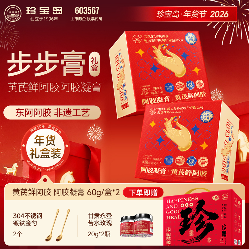 产品成分:阿胶 (驴皮、冰糖、大豆油、黄酒)、黄酒、冰糖、低聚果糖 (添加量>10%6)(益生元)、重瓣红玫瑰、橄榄油、黄芪(添加量>2%)