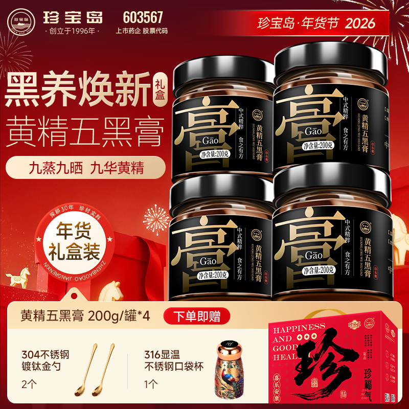 产品名称:【临期清仓】珍宝岛黑养焕新礼盒 黄精五黑膏200g*4罐