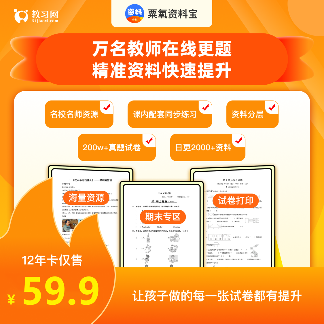 【课程内容】粟氧资料宝涵盖小初高语、数、外、道法、科学多科优质学习资料,并归纳整理为多个专区方便用户按需下载。包含:课堂同步练习、名校真题、名师精编套卷等,可辅助孩子日常练习、期中期末冲刺、小升初备考、以及寒暑假提升等多个学习场景。内容涵盖了全学科、多版本。 数千名老师同时出题,3000余位优秀在校老师长期在线更新真题试卷等内容、日新增资料2000+份