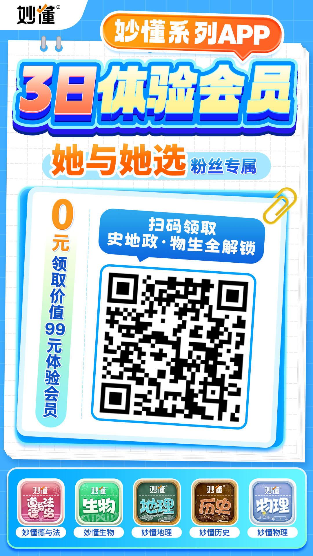 【内容包含】妙懂物理APP会员/妙懂历史APP会员/妙懂地理APP会员/妙懂生物APP会员