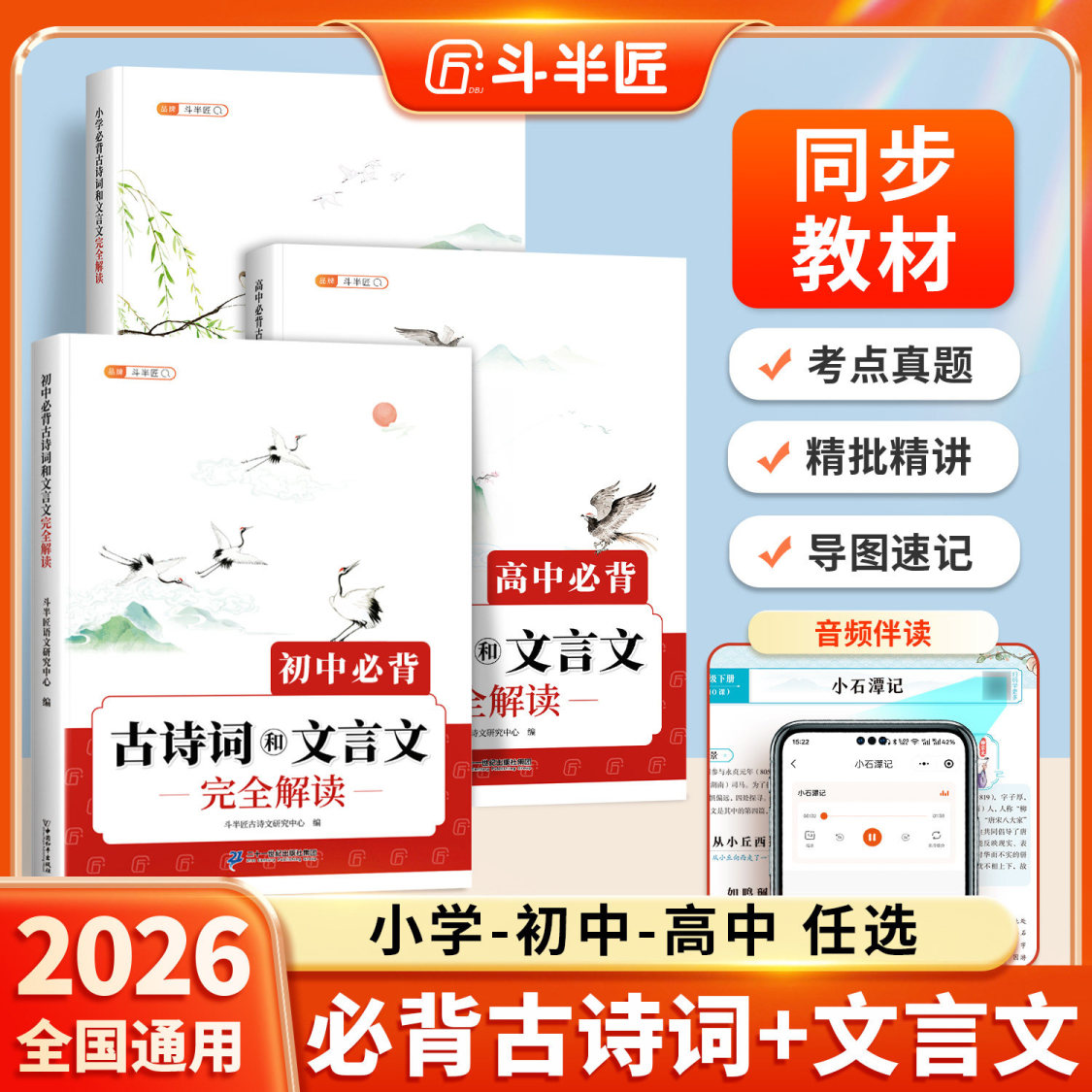 书名:必背古诗词文言文完全解读全一册,小学、初中、高中任选