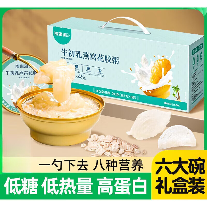 产品名称:【福东海】牛初乳燕窝花胶粥990克(165克x6)/盒