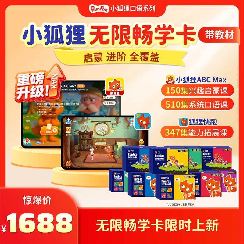 【课程包含】小狐狸 ABCMAX 150集+510集系统口语课+狐狸快跑347集能力拓展课+台词本+训练随材