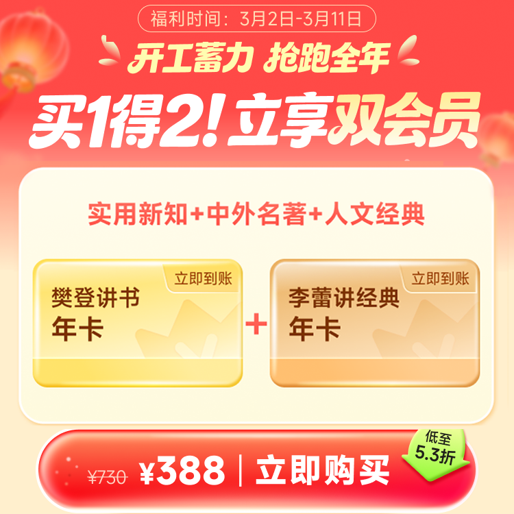 福利一:买樊登讲书赠1年李蕾讲经典(直充到账)