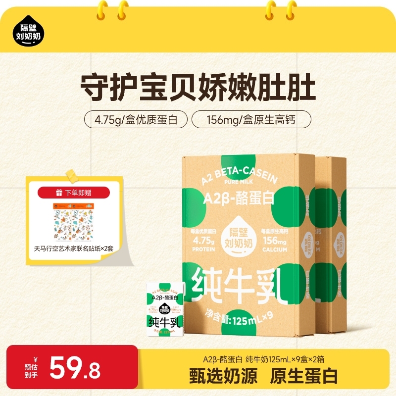 产品名称:隔壁刘奶奶 新年款A2mini奶*24盒/箱
