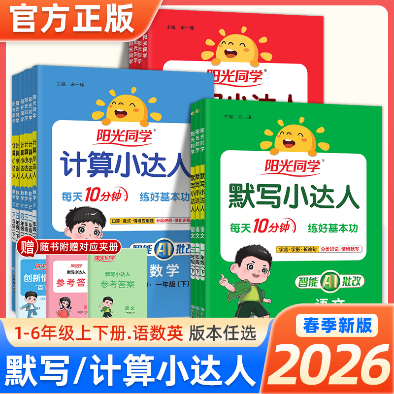 书名:26春 阳光同学《语文默写小达人》《数学计算小达人》《英语默写小达人》