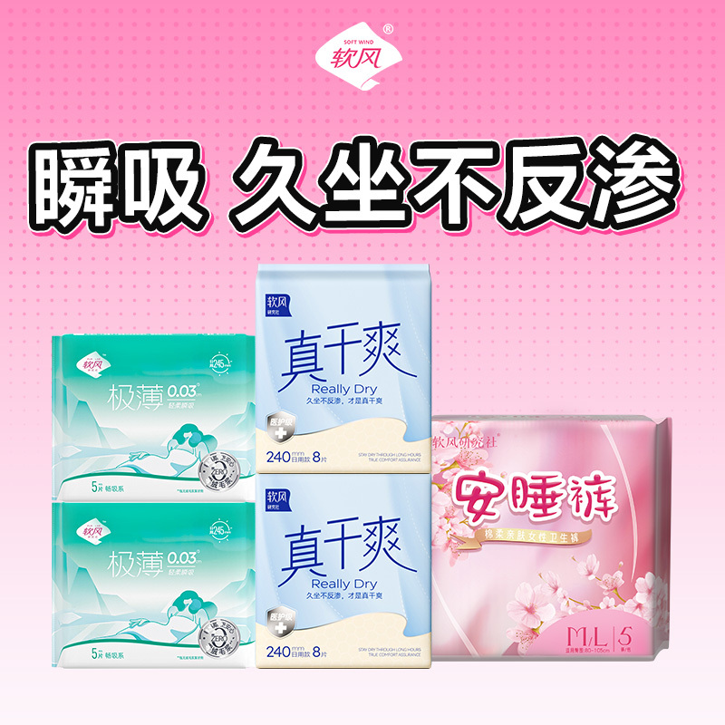 产品规格:安睡裤5条/包+畅吸245mm*5片装*2包+真干爽240mm8片*2包