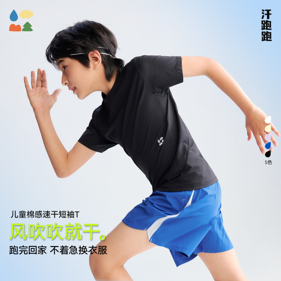 产品名称:【110-175】【汗跑跑】森林棠26春夏 [棉感速干] 清爽舒弹儿童运动短袖T恤40162286
