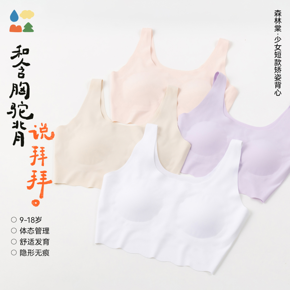 产品名称:森林棠波浪边少女文胸 短款背心内衣 一片式 记忆提拉 体态管理 隐形无痕43762514